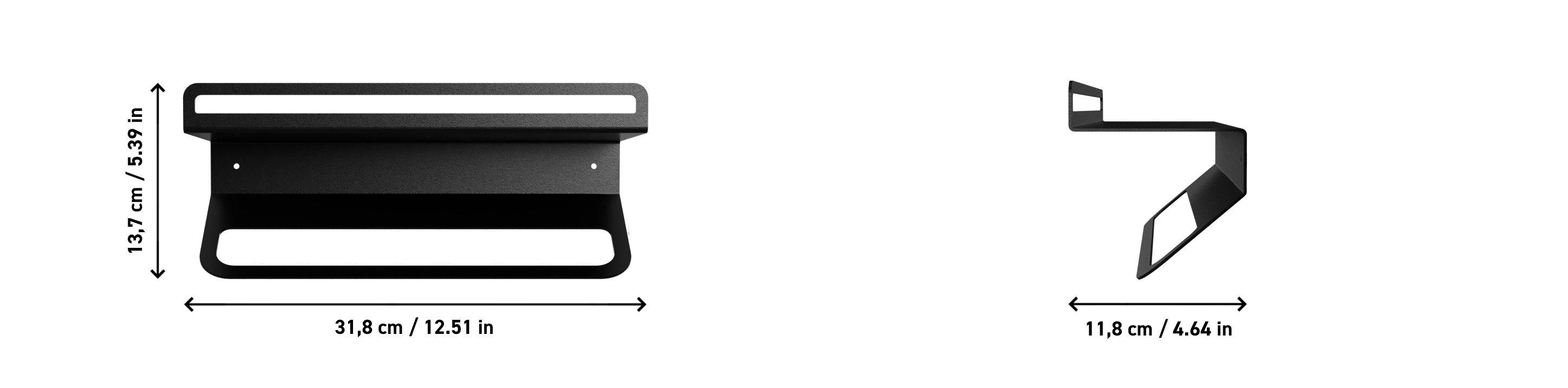The Towel Rack is made from solid, 3mm thick, powder-coated steel, renowned for its stability and durability. Thanks to the robust material, it is also possible to attach magnetic accessories, such as a magnetic dosing ring, to the shelf.