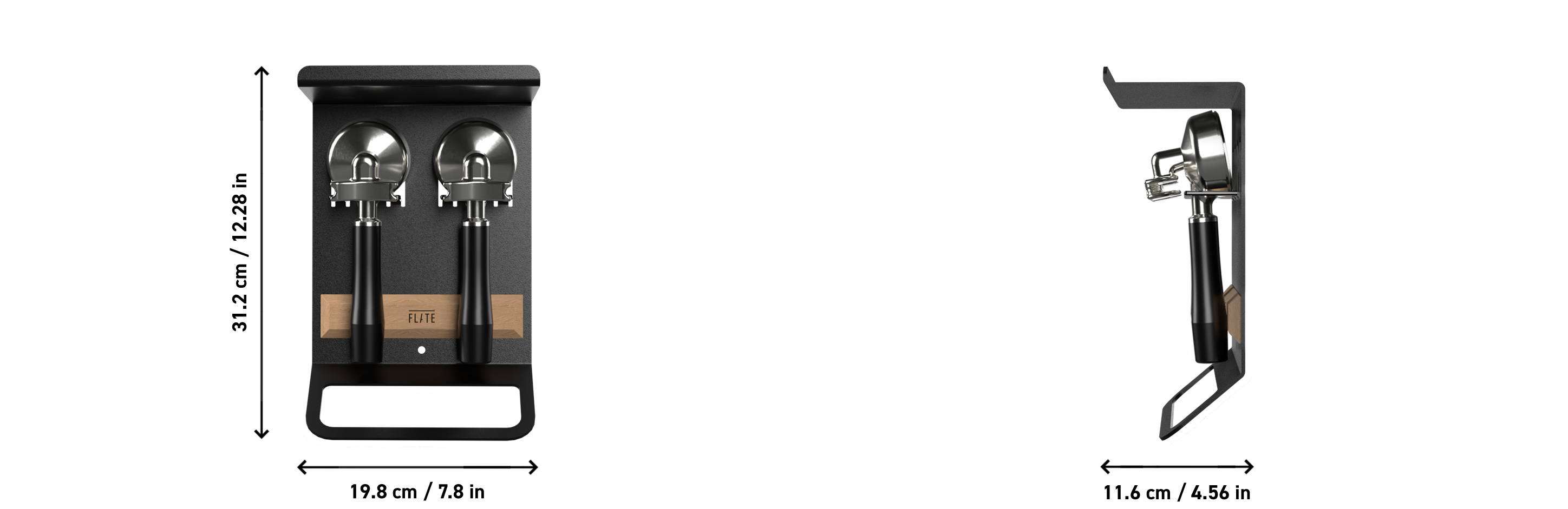 The Barista Rack Mini can be ideally combined with the FLATE® Barista Storage Rack if you need additional space for coffee beans, storage containers or milk jugs. It is suitable for almost all portafilters of the common models of many manufacturers, such as E61 machines, Sage, De'Longhi, Bezzera, Rocket and many more. It is also ideal for machines with an integrated tamper, as these often require fewer tools.