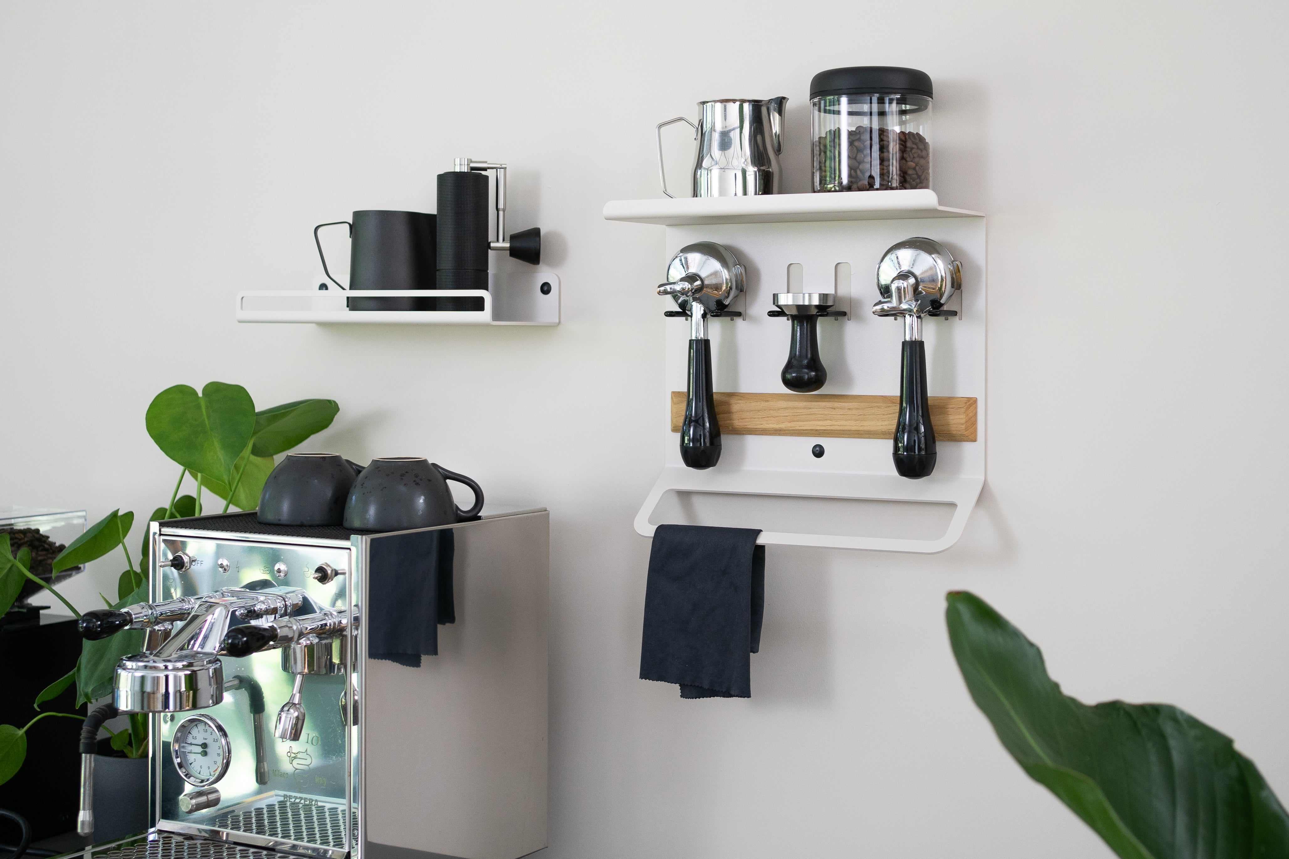 Mensola organizzatore per portafiltri, pressini e accessori da caffè