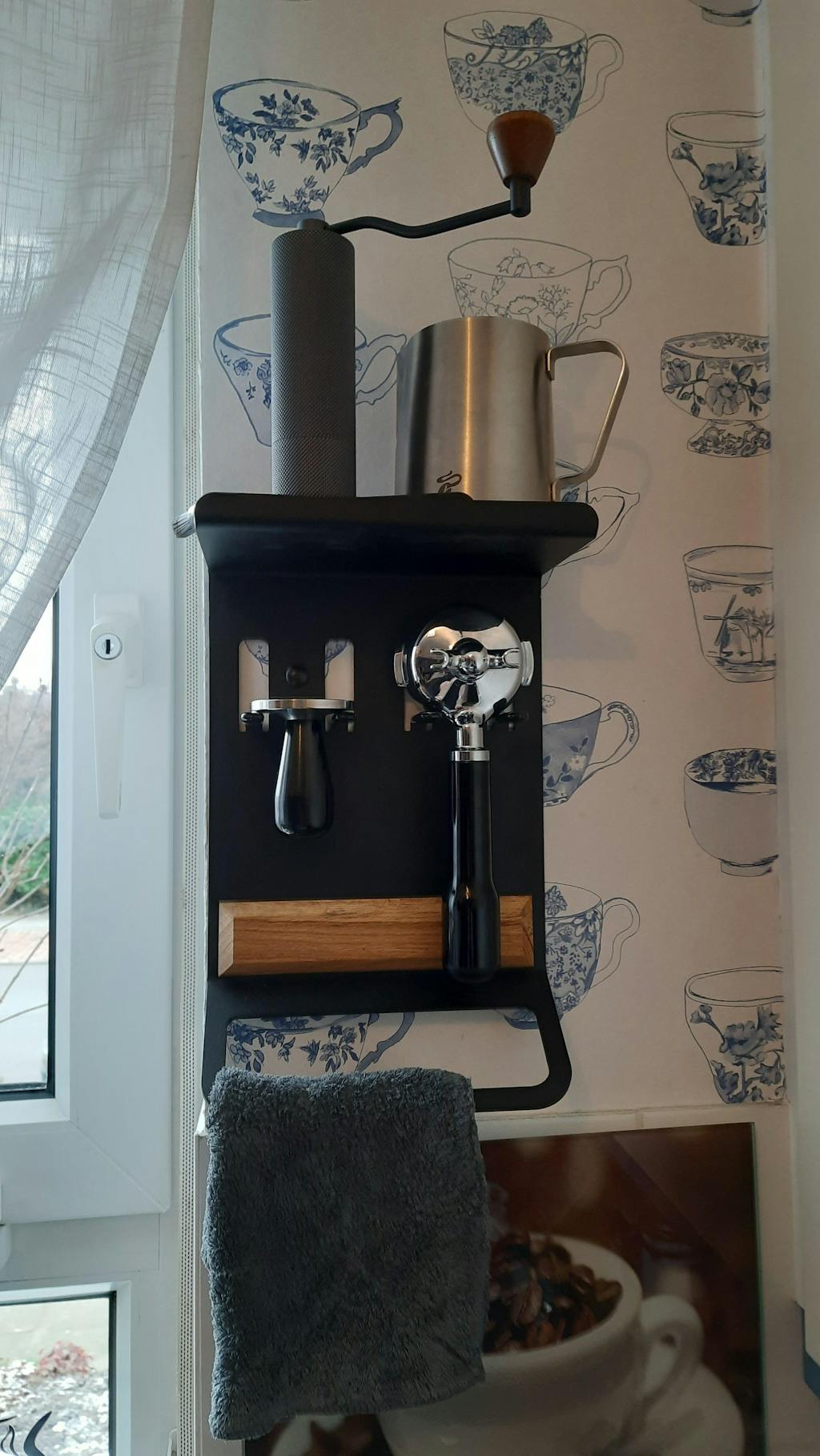 Mensola barista per portafiltri, tampers e accessori da caffè